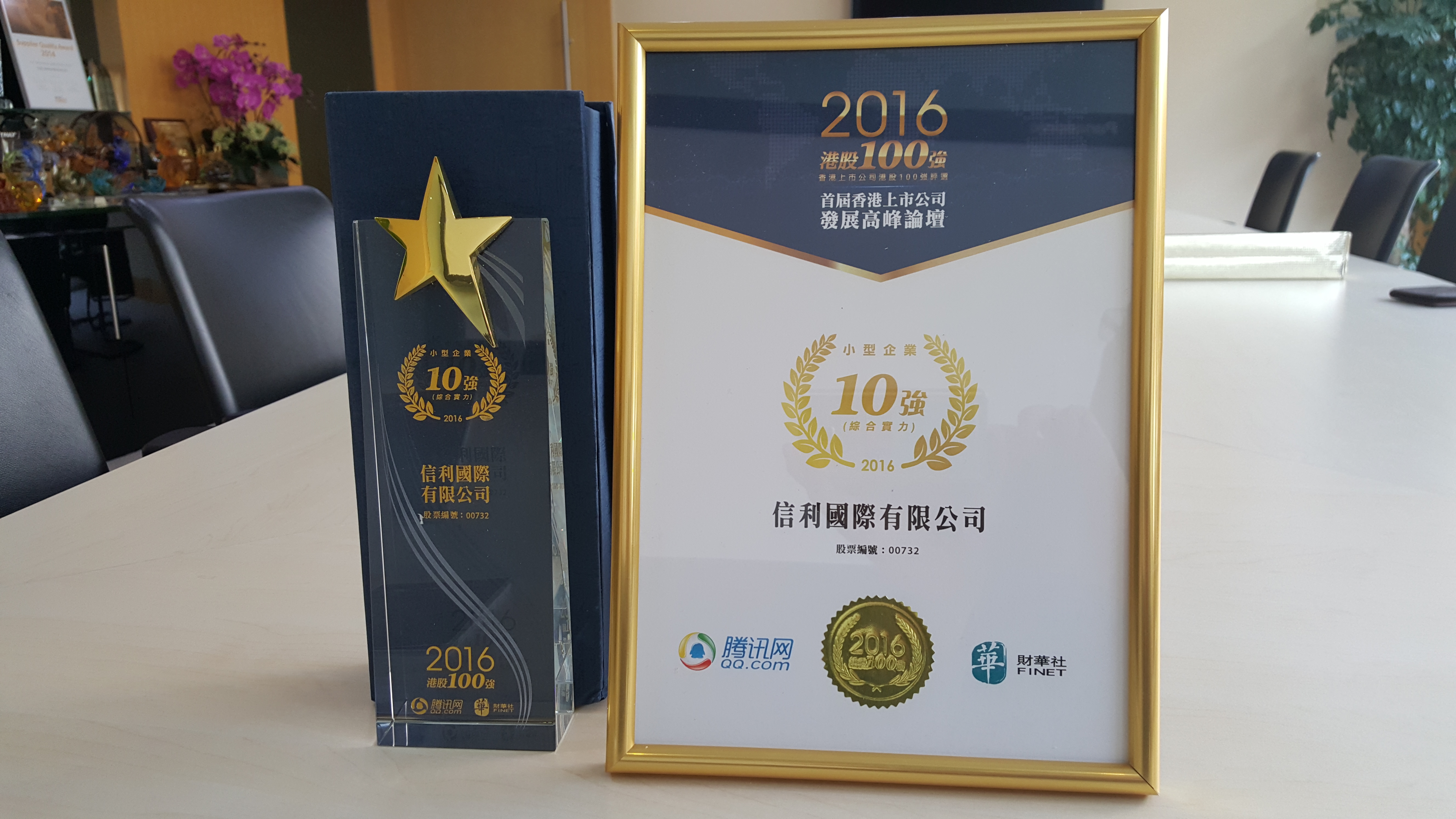 今天(2017418) 由騰訊網(wǎng)及財(cái)華社聯(lián)合主辦的“香港上市公司港股100強(qiáng)評(píng)選典禮” 於香港JW萬(wàn)豪酒店舉行,信利國(guó)際有限公司獲得2016年度香港上市公司港股100強(qiáng)評(píng)選之 小型企業(yè)“綜合實(shí)力10強(qiáng)”之一, 排名第四。